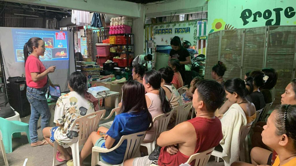 そこで、被災地周辺に暮らす特に貧しい世帯30世帯(アクセスの奨学生家族)を対象に、火災予防セミナーを実施。火事が起こるメカニズムや、よくある火事の原因などについての講習を行ったあと、火災予防のための工夫を各自で考えてもらうワークショップも実施。最後に、停電中でも使用できるソーラーランプをお渡ししました。
