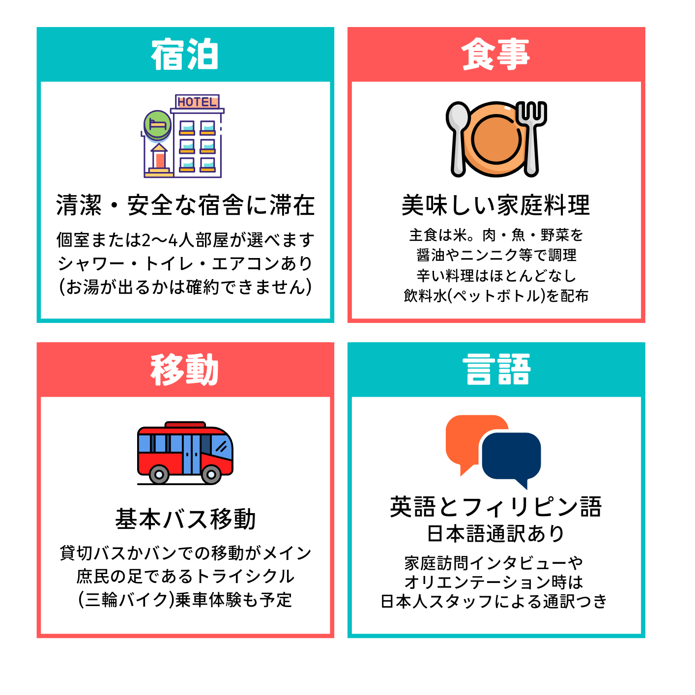 フィリピンで暮らした経験を持ち、ツアーに50回以上同行したスタッフが疑問について丁寧にお答えします。