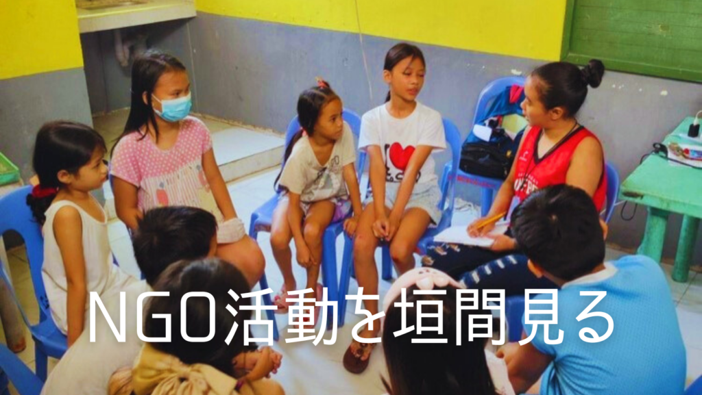 | スタッフ体制 | 旅行会社が手配した日本語が話せるガイド1名 | スタツア担当23年の日本人1名、日本語通訳2名、学生インターン3名、フィリピン現地職員5~6名 | NGOの日本人職員1名、日本人ボランティア3名、現地職員4~5名 |